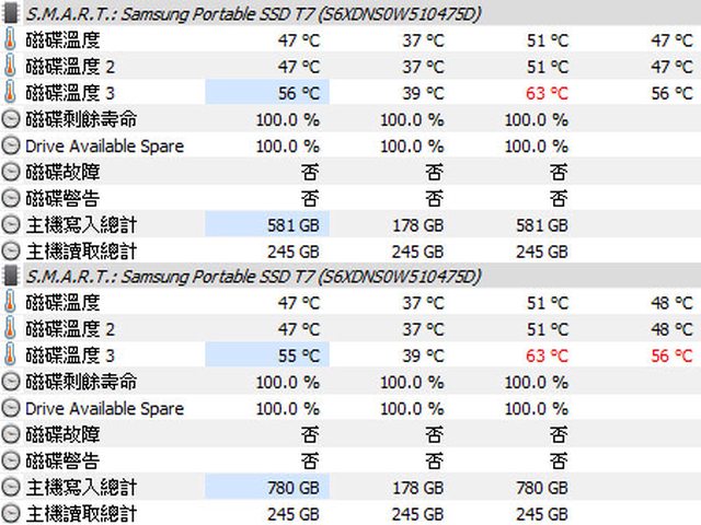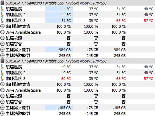 會降到150MB/s。無通風環境下檔案複製時HWiNFO溫度數據最高63度,紅外線熱影像顯示