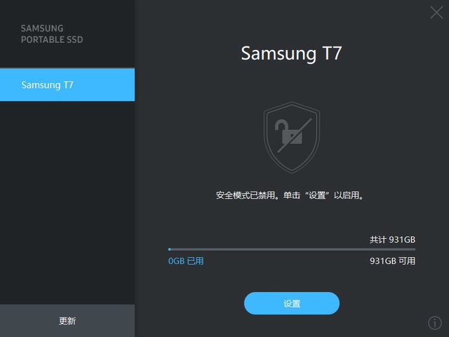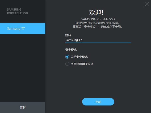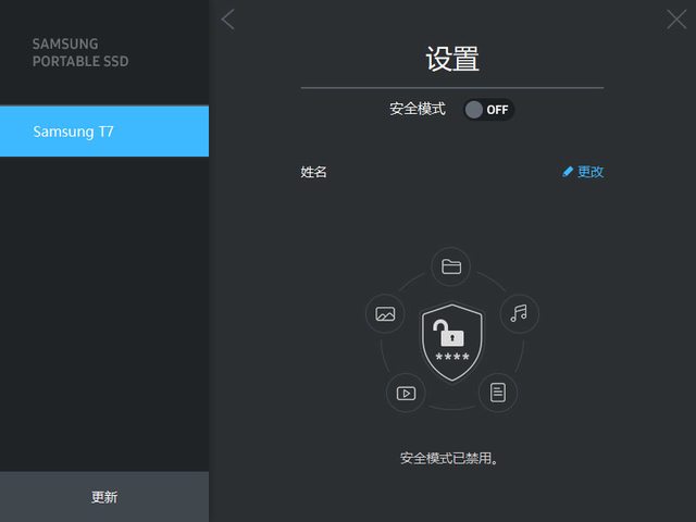 安全性:三星行動固態硬碟軟體1.0 (可選擇開啟密碼保護)