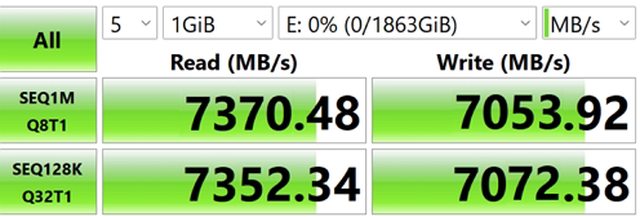 循序讀取逼近每秒 7370 MB