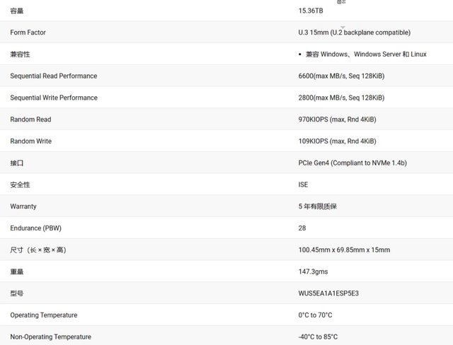 WD SN650 15.36T U.3企業級2.5吋SSD