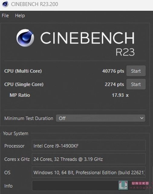 越強。CINEBENCH R23 跑分成績為,單核心 2274,多核心 40776。