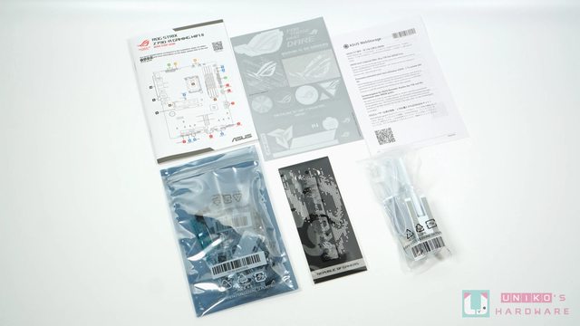 其他配件還有 1 份精美的快速安裝指南、1 張灰色白為主的 ROG 信仰貼紙、1 份 ASUS WE