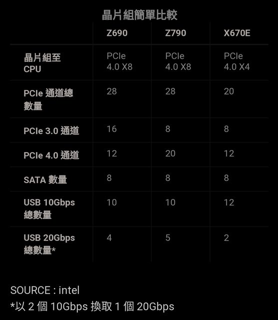 新晶片組 Z790 只是 Z690 的完全版,不論是 PCI-E 通道總數量還是 USB 總數量都不變,