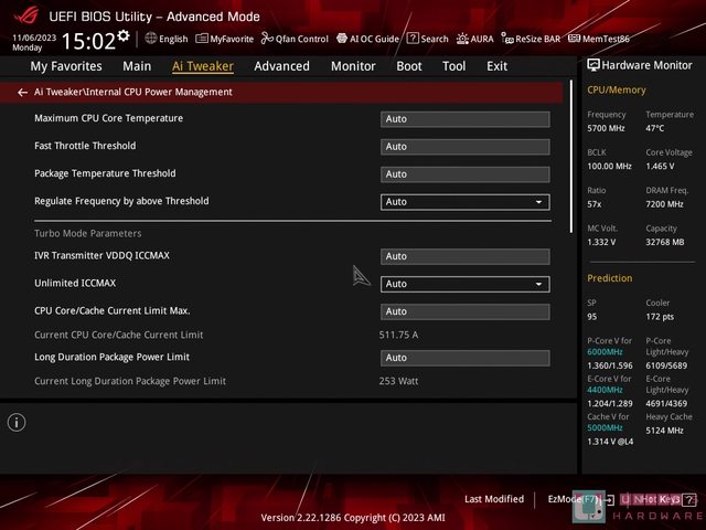 進階手動可以調整溫度上限和功耗,Maximum CPU Core Temperature、Fast Throttle Thre