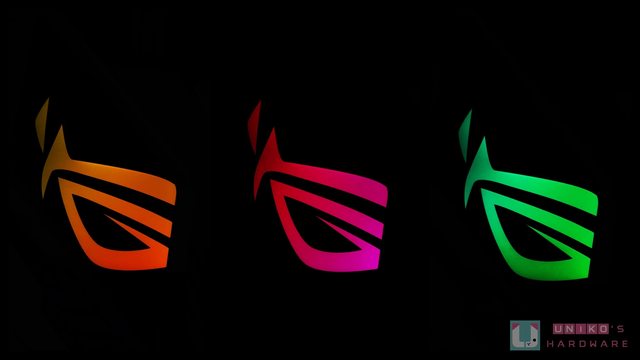 金屬散熱器之上方有塑膠 I/O 裝甲,特大鏡面開窗設計中可見藏著一個 ROG 之眼,點亮後