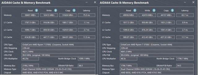 D4-3600 CL18 延遲65.7 vs D4-4600 CL19 延遲 75.5