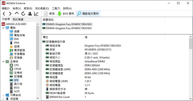 Kingston FURY Renegad DDR4-4600 參數資訊驗證