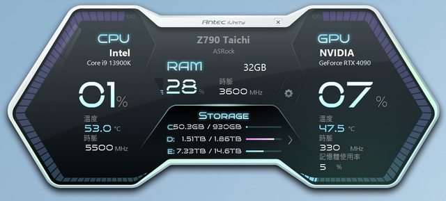 去Antec官網下載安裝iUnity,就可看到電腦的資訊,也可以同步顯示在機殼上,只是我