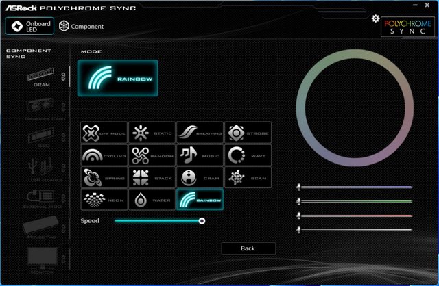 ASRock的燈光同步軟體Polychrome Sync,界面清楚簡單易用,可調整各種燈光效果,內