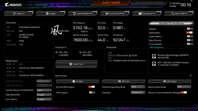MB: Z790 AORUS MASTER X / BIOS:F5d