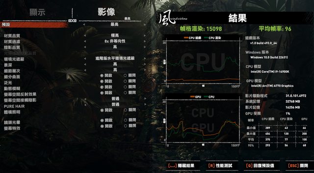 14900K => 幀格渲染:15098、平均幀率:96;