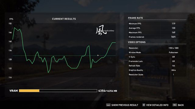 14900K => 最低119、平均130、最高149、Frames Rendered 7691;