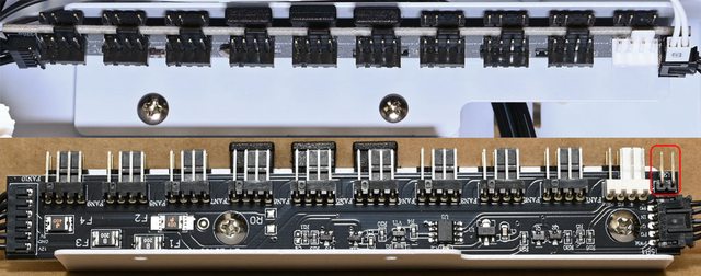 ●燈光風扇控制板提供10個3pin ARGB插針及10個風扇4pin插針,可從燈光按鈕切換內建