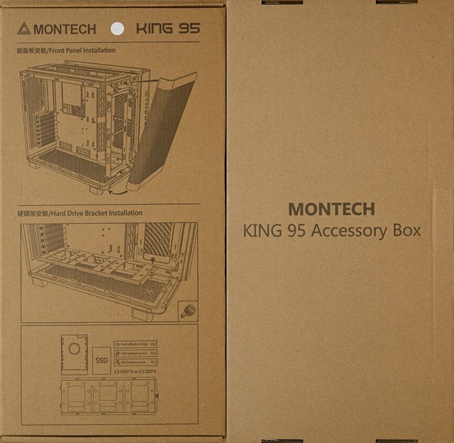 ▼配件盒正面有商標、顏色標示、KING 95字樣、正面網孔板安裝圖、左艙底部3.5吋/2.5