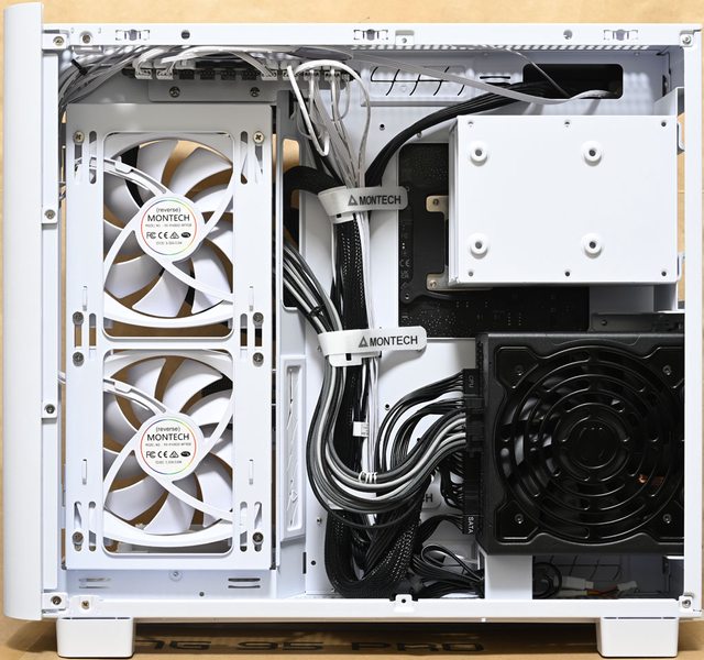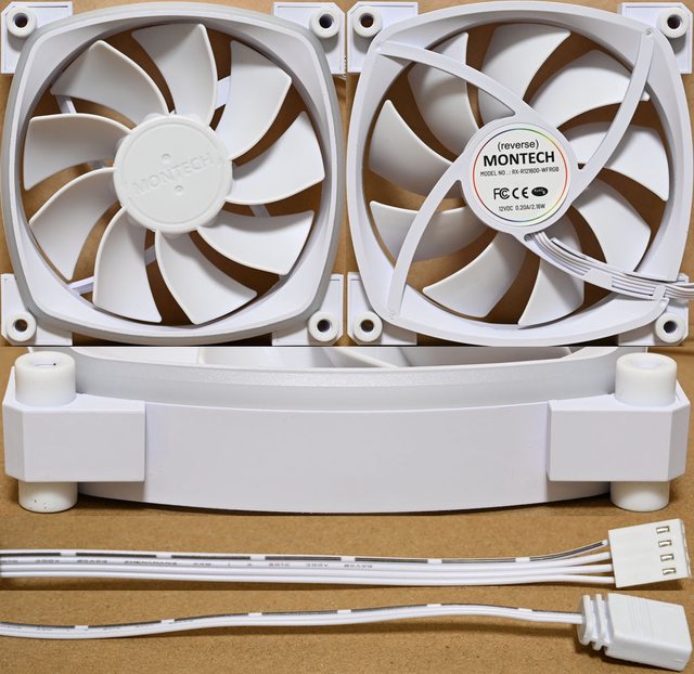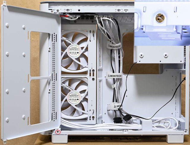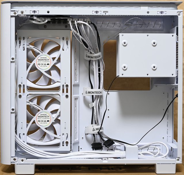 色款RX140 PWM反向風扇,底部預裝3個白色款RX120 PWM反向風扇,後方預裝1個白色款