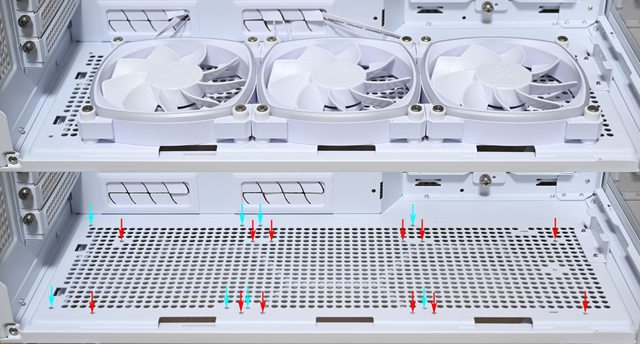 底部風扇安裝空間:3個120mm或2個140mm(預裝3個白色款RX120 PWM反向風扇)