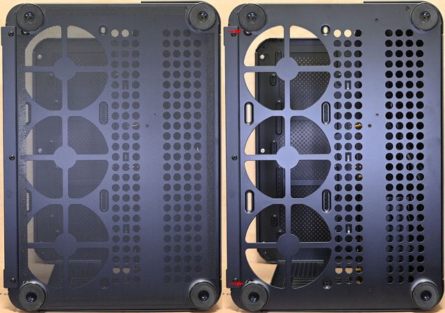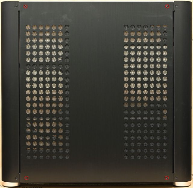 ▼右艙側板有圓孔網狀通風口,使用4個皿頭螺絲固定(紅色框)