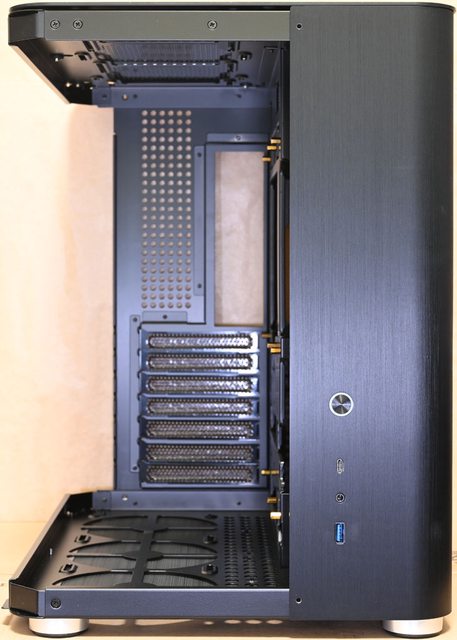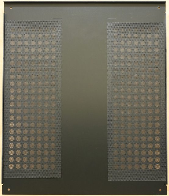▼機殼後方無風扇安裝位置,僅配置網狀通風口,下方7個標準擴充槽使用可重複拆裝的