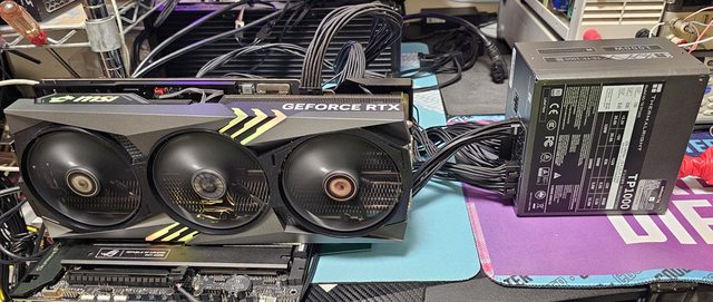 ▼用隨附的12VHPWR模組化線材連接MSI GEFORCE RTX 4090 GAMING X TRIO進行測試