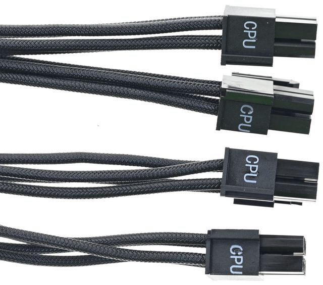 ▼2條處理器電源黑色模組化線路,提供2個EPS 4+4P接頭,線路長度65公分
