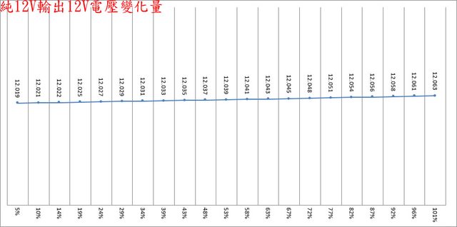 於綜合全負載輸出下12V/5V/3.3V各路低頻漣波分別為21.6mV/17.6mV/20.8mV;於純12V全
