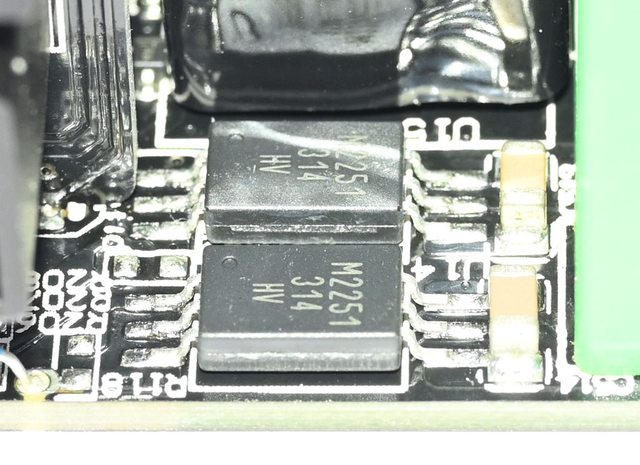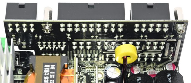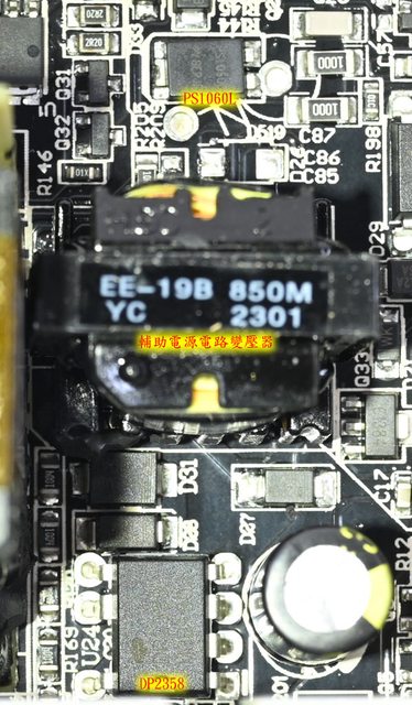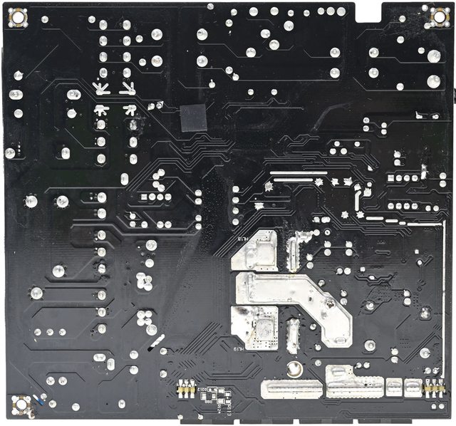 ▼主電路板背面沒有任何元件,焊點做工良好,於二次側區域加裝金屬板