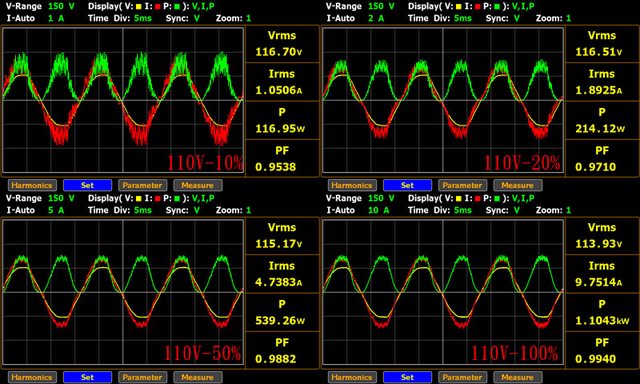 負載輸出下12V/5V/3.3V各路低頻漣波分別為22mV/15.2mV/15.6mV