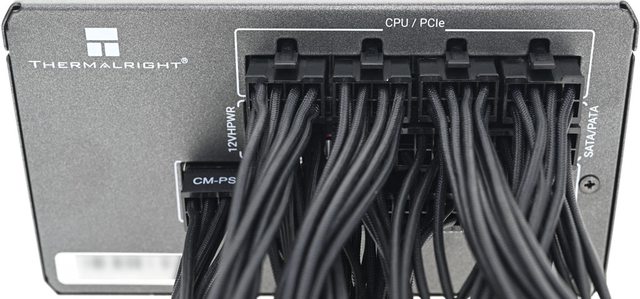 ▼模組化線組輸出插座有名稱標示,左上方有Thermalright商標,左下方有條碼