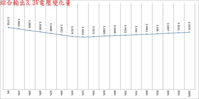 ○偏載測試,12V維持空載,測試3.3V滿載、5V滿載、3.3V/5V滿載的3.3V/5V/12V電壓變