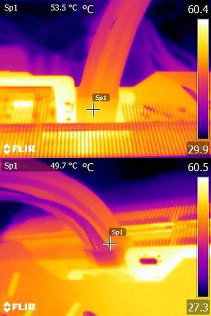 ▼執行FURMARK 30分鐘後顯示卡端插頭的紅外線熱影像圖(附註:安裝位置環境溫度會影