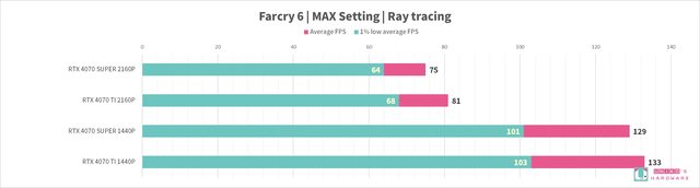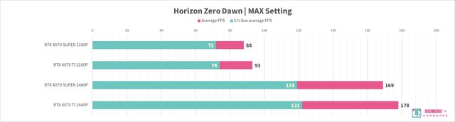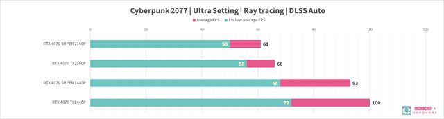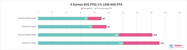 RTX 4070 SUPER 和 RTX 4070 TI,8 組遊戲的 FPS 差異分別是: