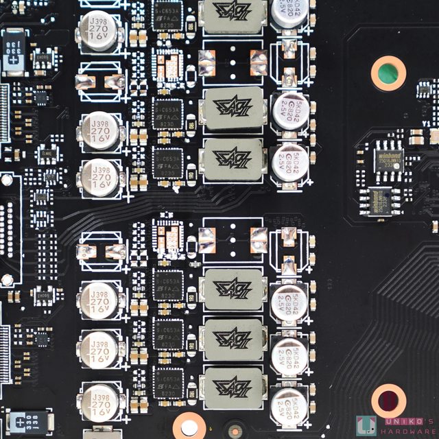 華碩在 PCB 上用料非常好,8 + 2 的設計加上左右分離的擺放方式,還有背板也有為供電