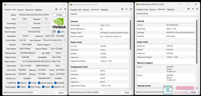 RTX 4070 SUPER 相較 RTX 4070,GPU 使用 AD104-350-A1,CUDA Cores 提升到 7168,核