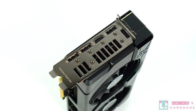 金屬背板和雙滾珠軸承的風扇則比較常見,I/O 部分華碩提供 3 個 DP 和 1 個 HDMI,至