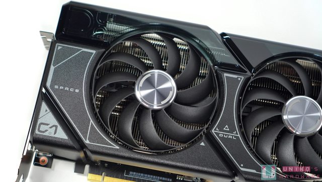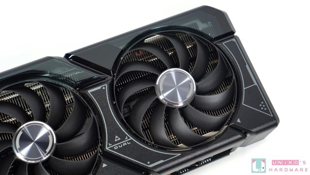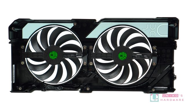 2 個軸向式風扇各擁有 11 塊扇葉,特長的扇葉源於中間的 HUB 被縮小,而扇葉的尾部連