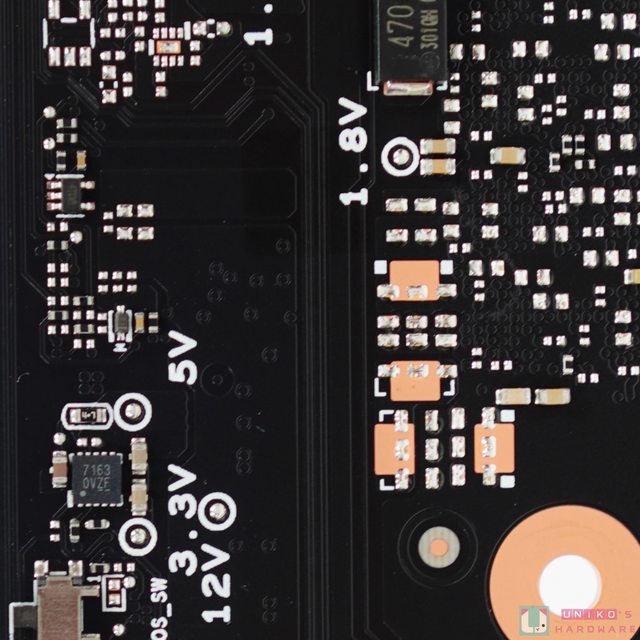 PCB 正面,核心的上方、左方、右方、甚至下方,都有不同的電路設計,各產生不同的電壓