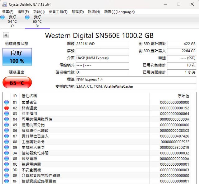 ▼CrystalDiskInfo資訊內容
