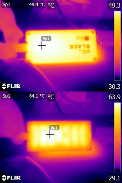 數據最高71度,紅外線熱影像顯示外殼背面溫度64度。使用USB-C to USB-A轉接頭連接至