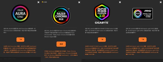 ●WD_BLACK Dashboard軟體(僅支援Windows)除了監控裝置狀態及效能外,還可自訂RGB