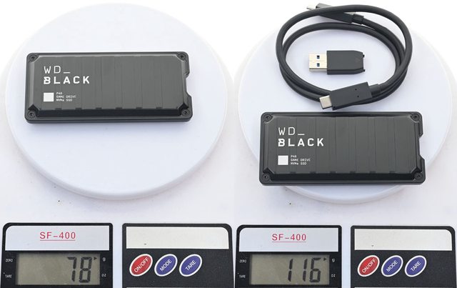 ▼WD_BLACK P50 GAMING DRIVE(上)與WD_BLACK P40 GAMING DRIVE(下)正面大小差異,