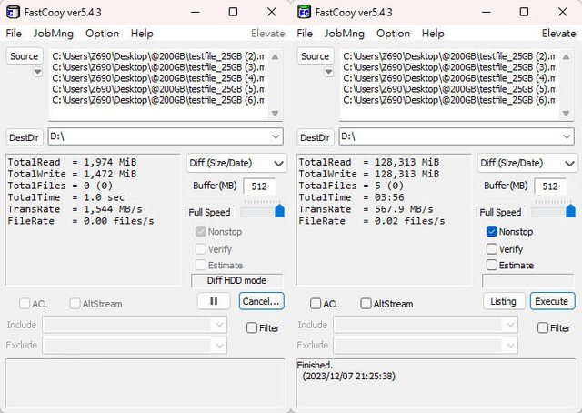 ▼第2次FastCopy複製,起始速度1578MB/s,結束速度567.3MB/s,耗時6分19秒