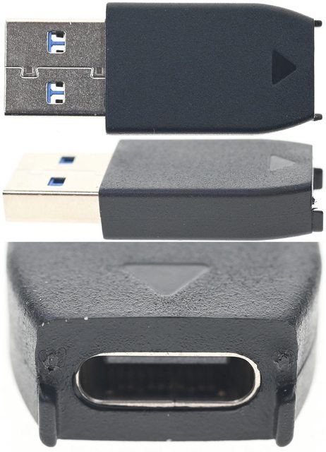 ▼USB-C to USB-A轉接頭與USB-C to USB-C傳輸線接頭兩端的三角形記號要對準(上圖)才