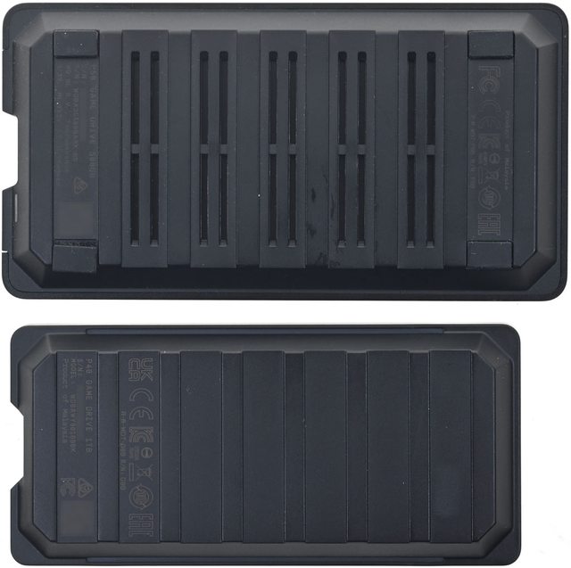 ▼WD_BLACK P50 GAMING DRIVE(上)與WD_BLACK P40 GAMING DRIVE(下)背面差異,P40少
