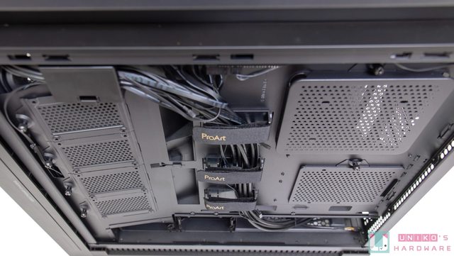 剛好被蓋住,搭配 ProArt LC420 一體式水冷,整體看起來有一種低調但又不失專業的感覺