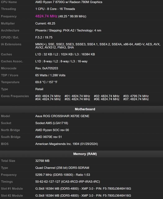 https://bit.ly/4bxVGRu 大家都知道AM4 APU的IMC很強 記憶體不要太爛的話基本上很容易上4000沒問題 AM5 APU表現如何呢?現在看來有結果了 前些日子 有人用炸G 大鳥鳥AORUS B650 TACHYON搭配8700G 最後上了10346MT/s https://i.imgur.com/6ceMfho.jpg