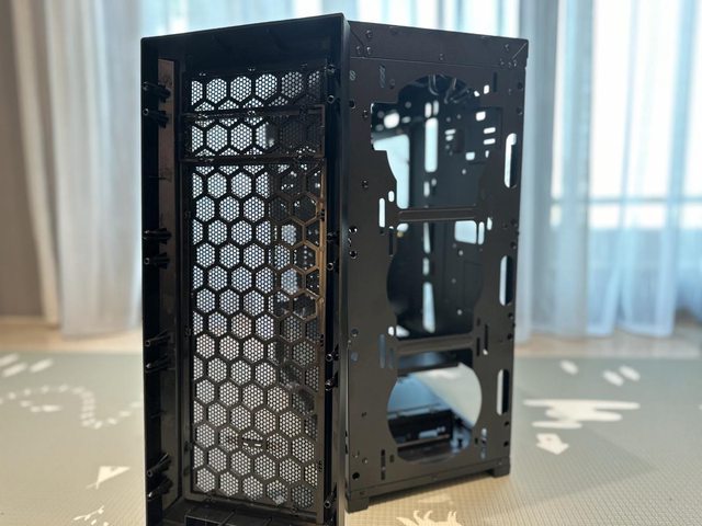 一側為3mm厚的玻璃側板,前面板則是沖網孔設計,目前台灣僅販售黑色版本。