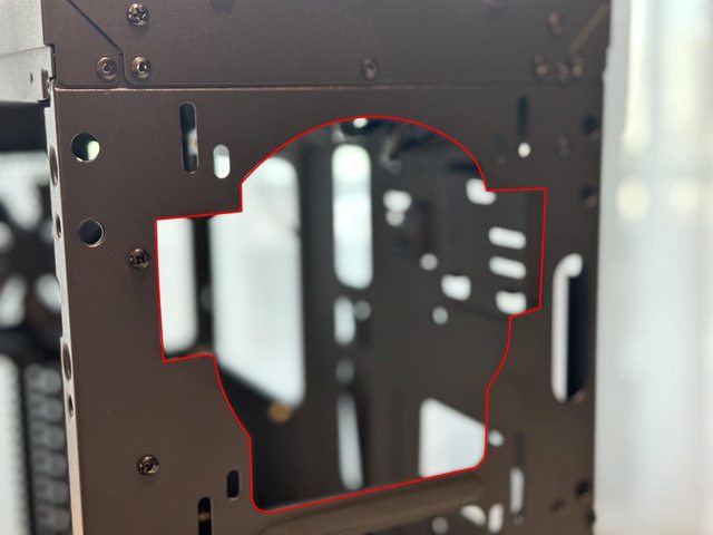 從風扇/5.25"裝置開孔可看出如果設在第一槽位可能會影響最上方風扇螺絲孔。