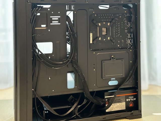 雖然使用非模組化電源,但背部空間尚足夠塞下所有線材,反而是前置IO的USB線較費心