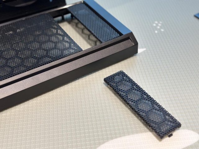 底部僅電源位置設有開孔,採用可拆除但又不太方便拆除的PVC濾網,不過這也是許多平