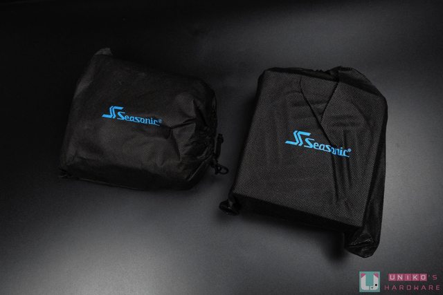 覆電源本體,電源與線材各自獨立裝在黑色收納袋內,視覺上相當整齊統一。